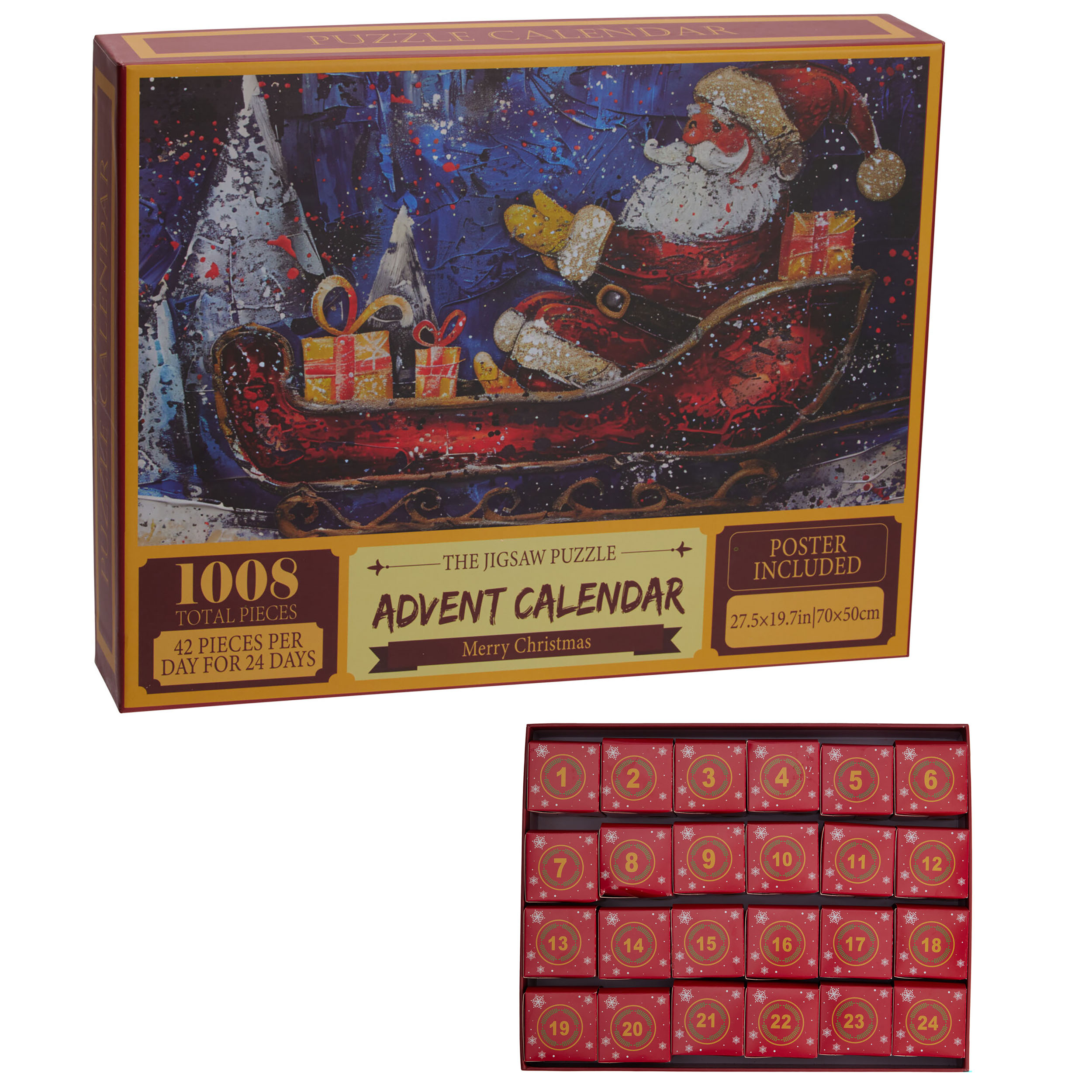 Adventskalender Puzzle mit 1008 Teilen - 24 Schachteln mit jeweils 42 Teilen - 50 x 70 cm