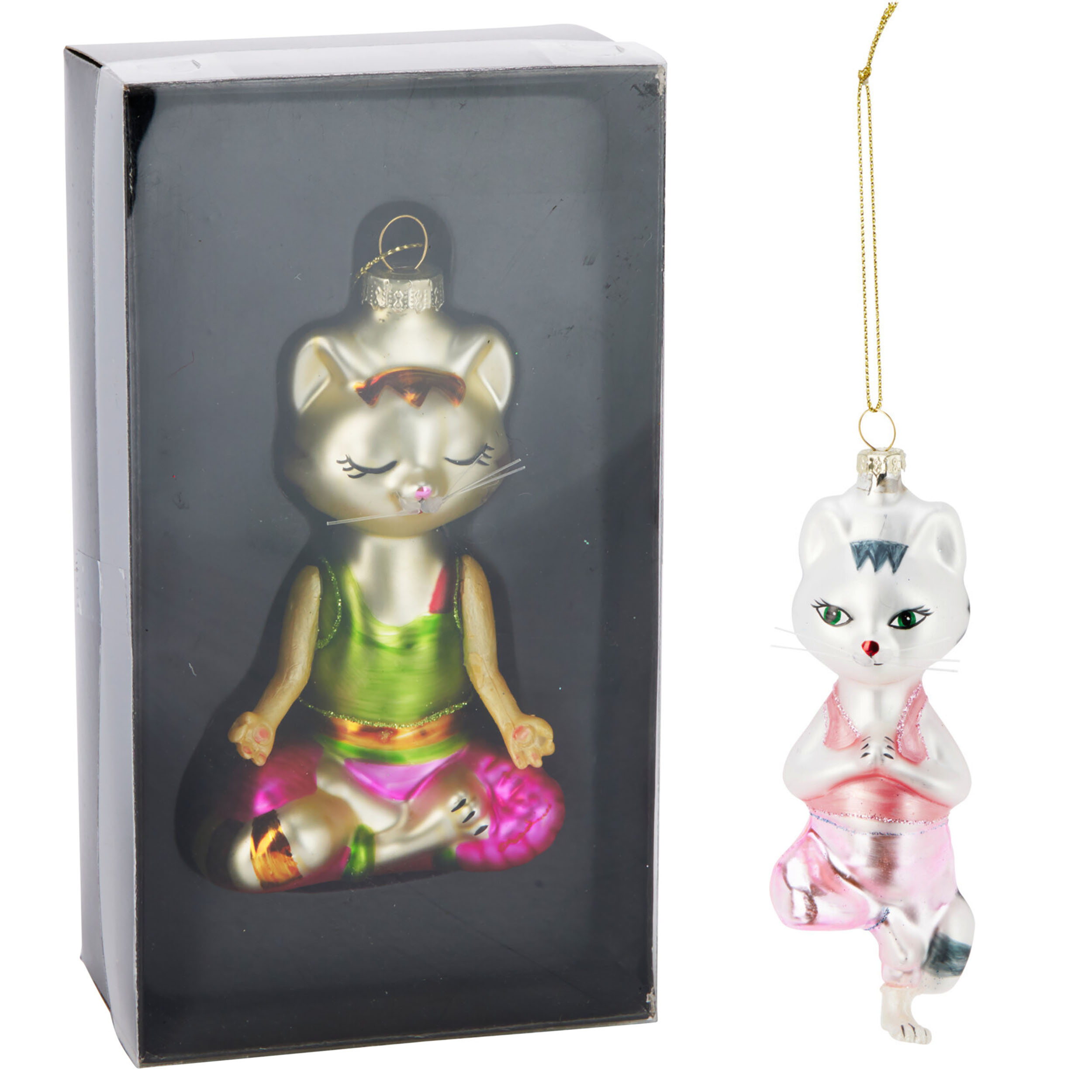 Diese außergewöhnlichen Glashänger im 2-teiligen Set bringen nicht nur Farbe in dein Zuhause, sondern sorgen auch für gute Laune und bewusste Entspannung. Stell dir vor, wie die witzigen Yoga-Katzen in tiefer Kontemplation deine Räume verschönern und dabei alle Blicke auf sich ziehen – ein echter Hingucker, der dir jedes Mal ein Lächeln ins Gesicht zaubert. Mit ihrem einzigartigen Design verbinden diese Baumhänger Humor und Gelassenheit auf charmante Weise. Die imposanten Katzenfiguren sind nicht nur dekorativ, sondern erzählen eine kleine Geschichte von Ruhe und Achtsamkeit, die dich immer wieder daran erinnert, einen Moment innezuhalten. Gefertigt aus hochwertigem Glas messen die Hänger 4,6 x 16 x 6,5 cm und überzeugen durch ihre detailverliebte Gestaltung. Das Set besteht aus zwei liebevoll gestalteten Katzen, die sich perfekt als Fensterdekoration oder als origineller Schmuck für deinen Weihnachtsbaum eignen. Ob im Wohnzimmer am Fenster, im Büro zur Aufmunterung oder als Geschenkidee für Freunde, die Yoga und Katzen lieben – diese Glashänger machen überall eine gute Figur. Sie schaffen eine Atmosphäre voller Leichtigkeit und Spaß, die jeden Raum aufpeppt. Vertraue auf Qualität und Design, das mit Herzblut gefertigt wurde. Die robusten Materialien sorgen dafür, dass du lange Freude an diesen ausgefallenen Deko-Objekten hast. Zahlreiche zufriedene Kunden bestätigen: Diese Yoga-Katzen sind einfach unwiderstehlich. Warte nicht länger und bring mit diesem witzigen Duo frischen Wind in deine Dekoration! Hol dir jetzt dein Set der Yoga-Katzen-Glashänger und lass deine Räume lebendig werden.