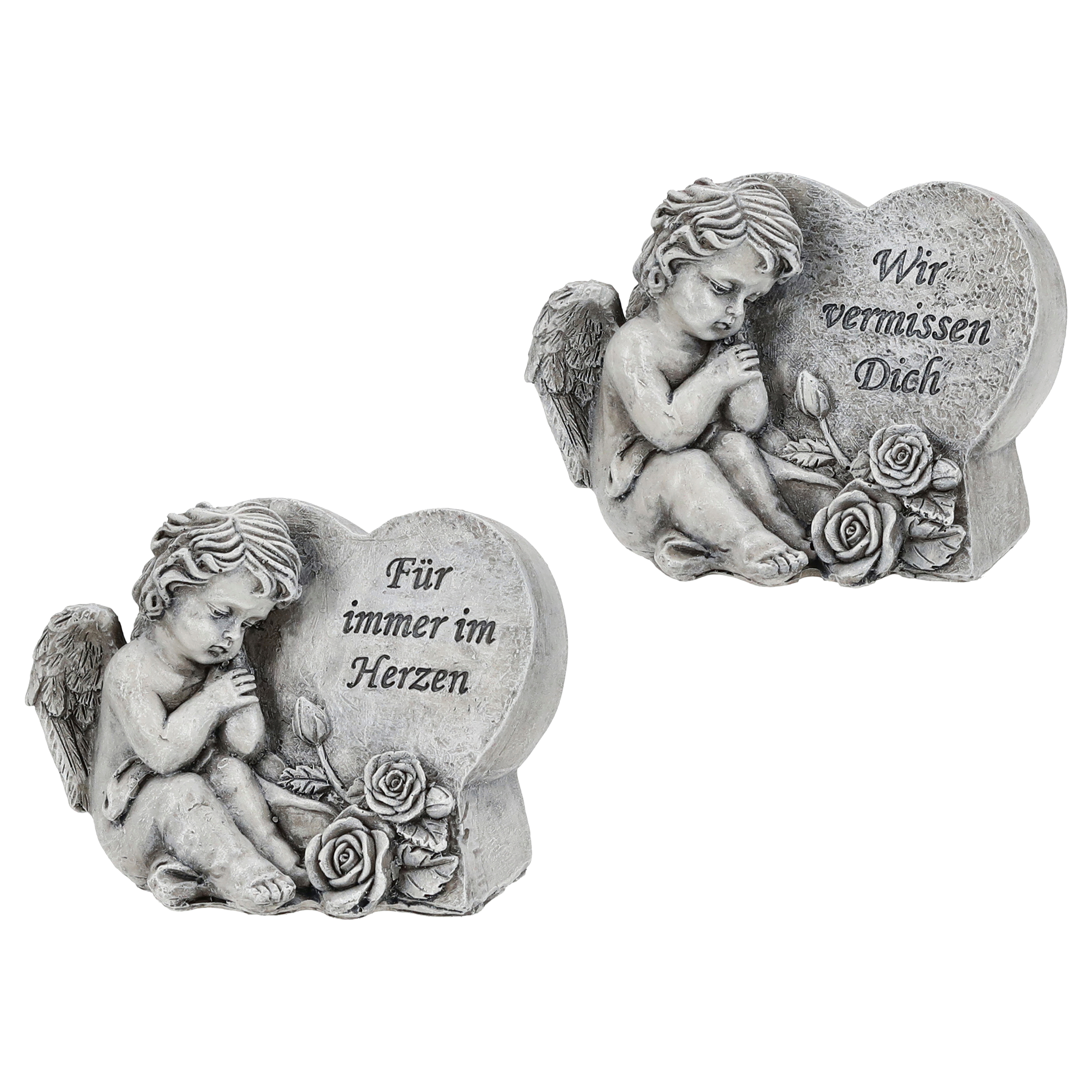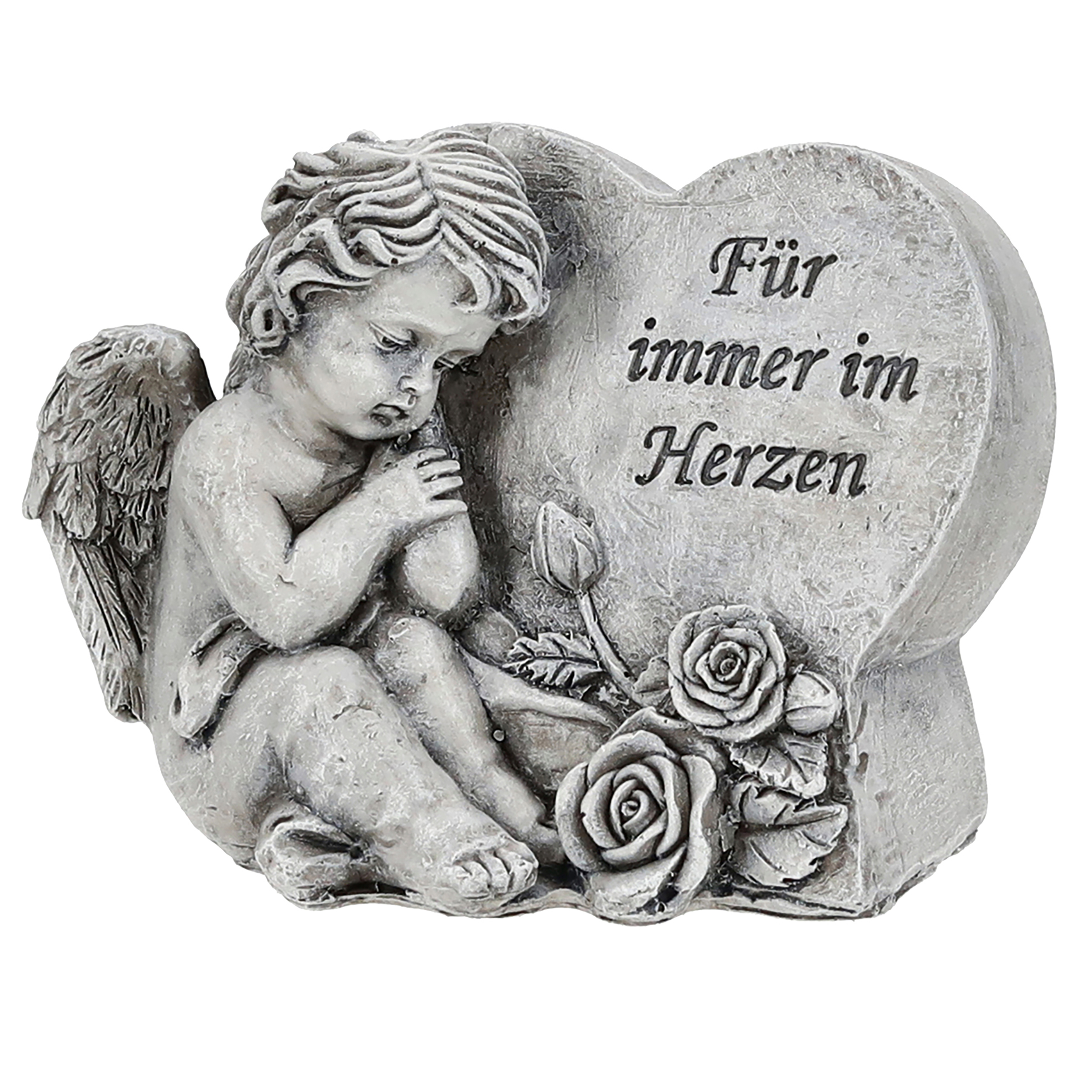 Diese zeitlos schöne Grabdekoration „Engel mit Herz“ bietet Ihnen eine würdevolle und liebevolle Möglichkeit, die Erinnerung an Ihre verstorbenen Angehörigen stets lebendig zu halten. Sie schenkt Trost und Verbundenheit in schweren Momenten und erinnert daran, dass die Liebe über den Abschied hinaus Bestand hat. Mit ihrem sanften Ausdruck und der herzlichen Inschrift „Für immer im Herzen“ oder „Wir vermissen Dich“ spricht dieser Engel tief aus dem Herzen und vermittelt ein Gefühl von Geborgenheit und ewiger Nähe. Gerade in Zeiten der Trauer kann eine solche symbolische Geste Trost spenden und stille Worte ausdrücken, wo Worte fehlen. Die beiden Modelle sind aus wetterfestem Kunstharz gefertigt, wodurch sie selbst widrigen Witterungsbedingungen standhalten und ihre Schönheit über lange Zeit bewahren. Mit den Maßen von 12 x 9 x 7 cm sind sie dezent und dennoch präsent, ideal geeignet für das Grab oder einen besonderen Erinnerungsplatz im Garten. Die sorgfältige Verarbeitung und die filigranen Details verleihen jedem Engel eine einzigartige Ausstrahlung. Ob auf einem Friedhof, im privaten Garten oder als liebevolles Andenken auf einer Gedenkstelle – diese Grabdekoration findet vielseitige Verwendungsmöglichkeiten. Sie kann als stille Botschaft der Liebe platziert werden oder als Zeichen des Gedenkens bei besonderen Anlässen wie Jahrestagen oder Geburtstagen. Vertrauen Sie auf die Qualität dieses Produkts, das bereits viele Kunden überzeugt hat und durch seine robuste Materialwahl sowie die sorgfältige Herstellung besticht. So bleibt Ihr liebevolles Andenken dauerhaft geschützt und schön erhalten. Gönnen Sie sich oder Ihren Lieben dieses zeitlose Symbol der Erinnerung – bestellen Sie jetzt den „Engel mit Herz“ und setzen Sie ein Zeichen der liebevollen Verbundenheit, das weit über Worte hinausgeht.