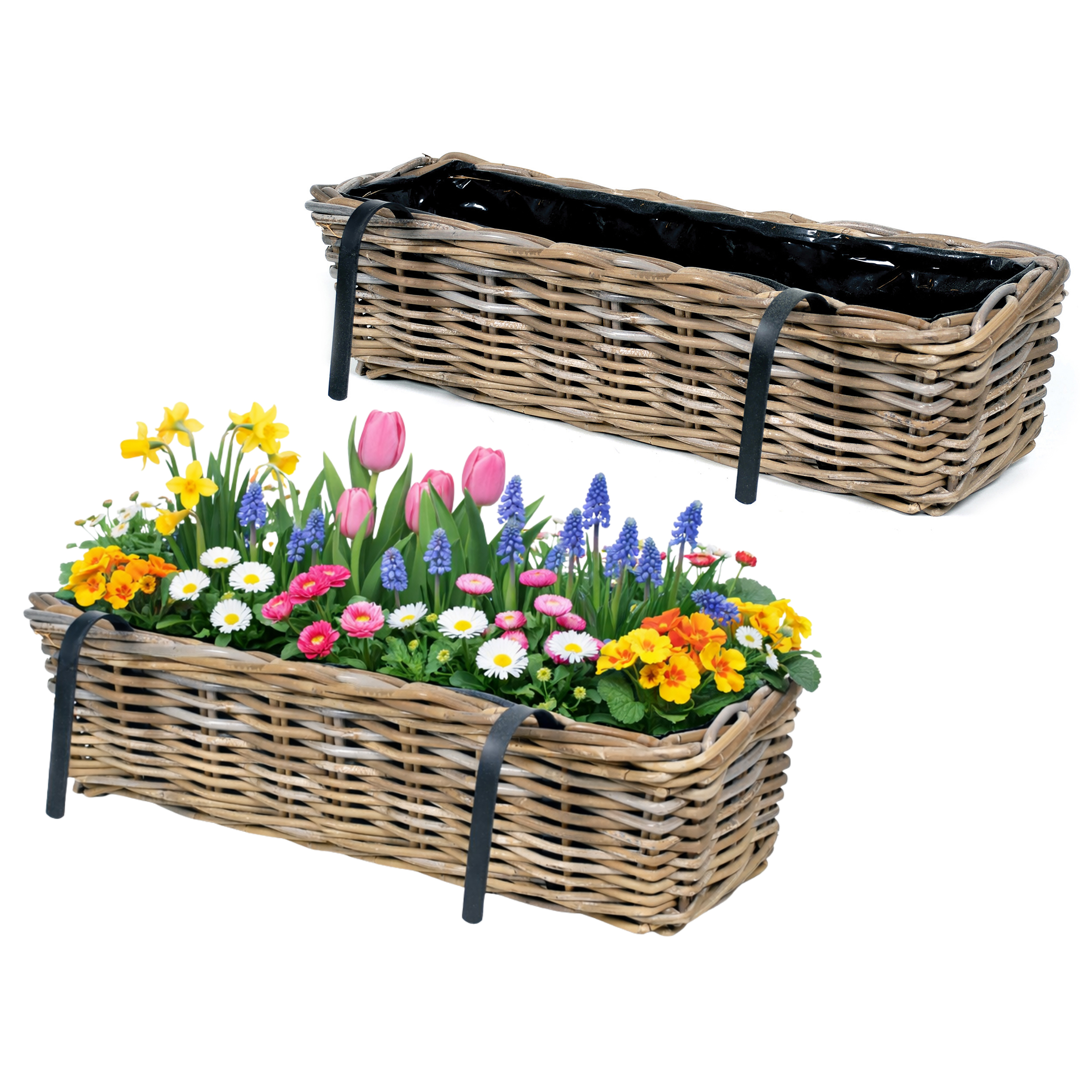 Blumenkasten "Marie" aus Weide mit Folie und Halterung