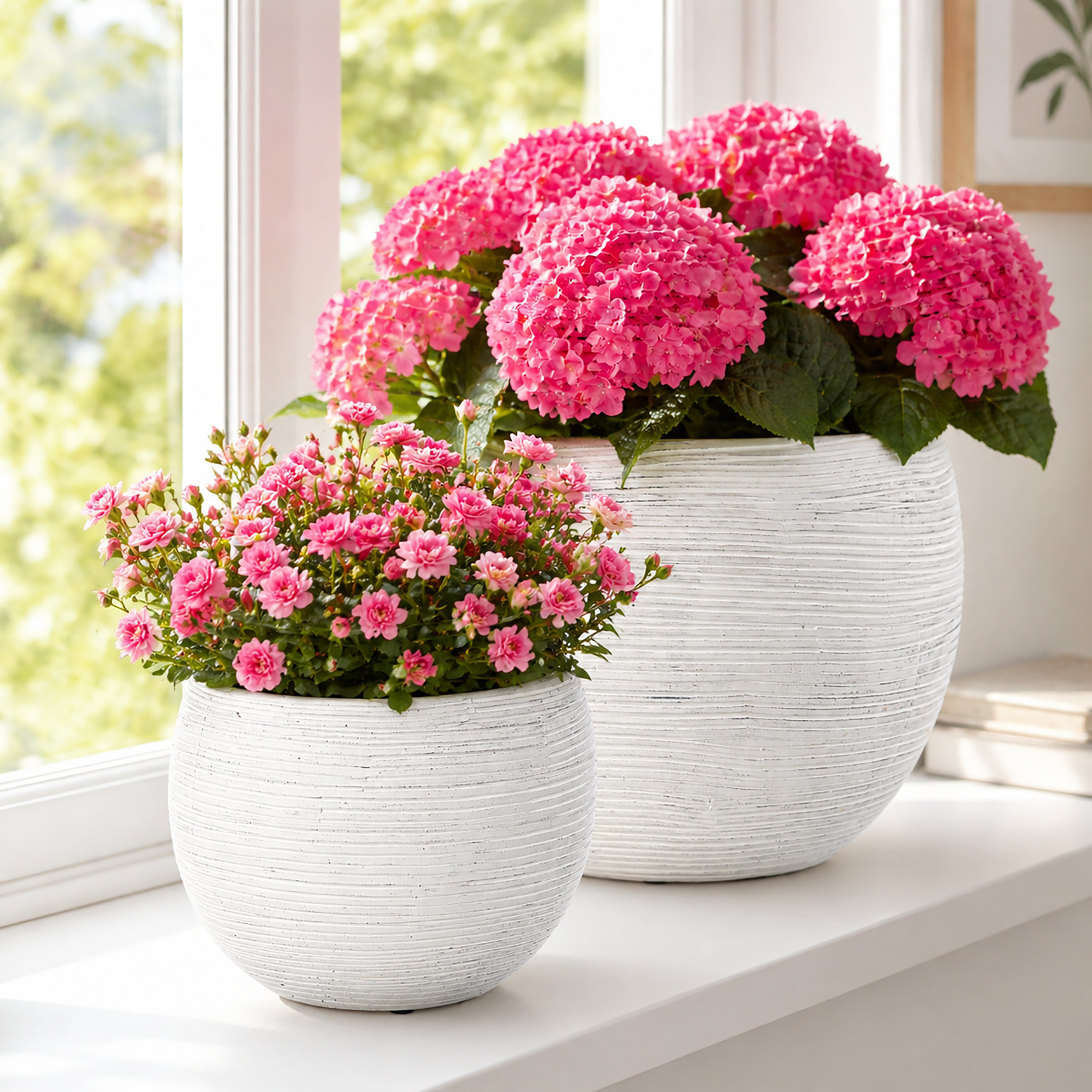 Die Blumenübertöpfe Naturharmonie Lina bringen eine ruhige und natürliche Atmosphäre in dein Zuhause. Das stilvolle 2er Set besteht aus Übertöpfen aus matter Keramik im modernen Natur Look und ist ideal für Zimmerpflanzen, Kräuter oder Sukkulenten geeignet. Mit einem mittigen Durchmesser von 19 cm und 25 cm lassen sich sowohl kleinere als auch größere Pflanzen dekorativ präsentieren. Die Keramik Übertöpfe setzen Grünpflanzen auf der Fensterbank, im Wohnzimmer oder auf dem Balkon stilvoll in Szene und passen perfekt zu moderner Einrichtung ebenso wie zum Landhaus Stil. Die matte Oberfläche unterstreicht die hochwertige Optik und sorgt für eine zeitlose Pflanzendeko. Ob als Blumentopf Übertopf für bestehende Pflanztöpfe oder als dekoratives Pflanzgefäß für neue Arrangements – dieses Keramik Blumentopf Set schafft ein harmonisches Gesamtbild in jedem Raum. Wer Blumenübertöpfe aus Keramik im Natur Look sucht, die modernes Design mit natürlicher Wohnlichkeit verbinden, findet mit diesem 2er Set in Ø 19 cm und Ø 25 cm eine stilvolle Lösung für Innenbereich, Balkon oder geschützte Terrasse.