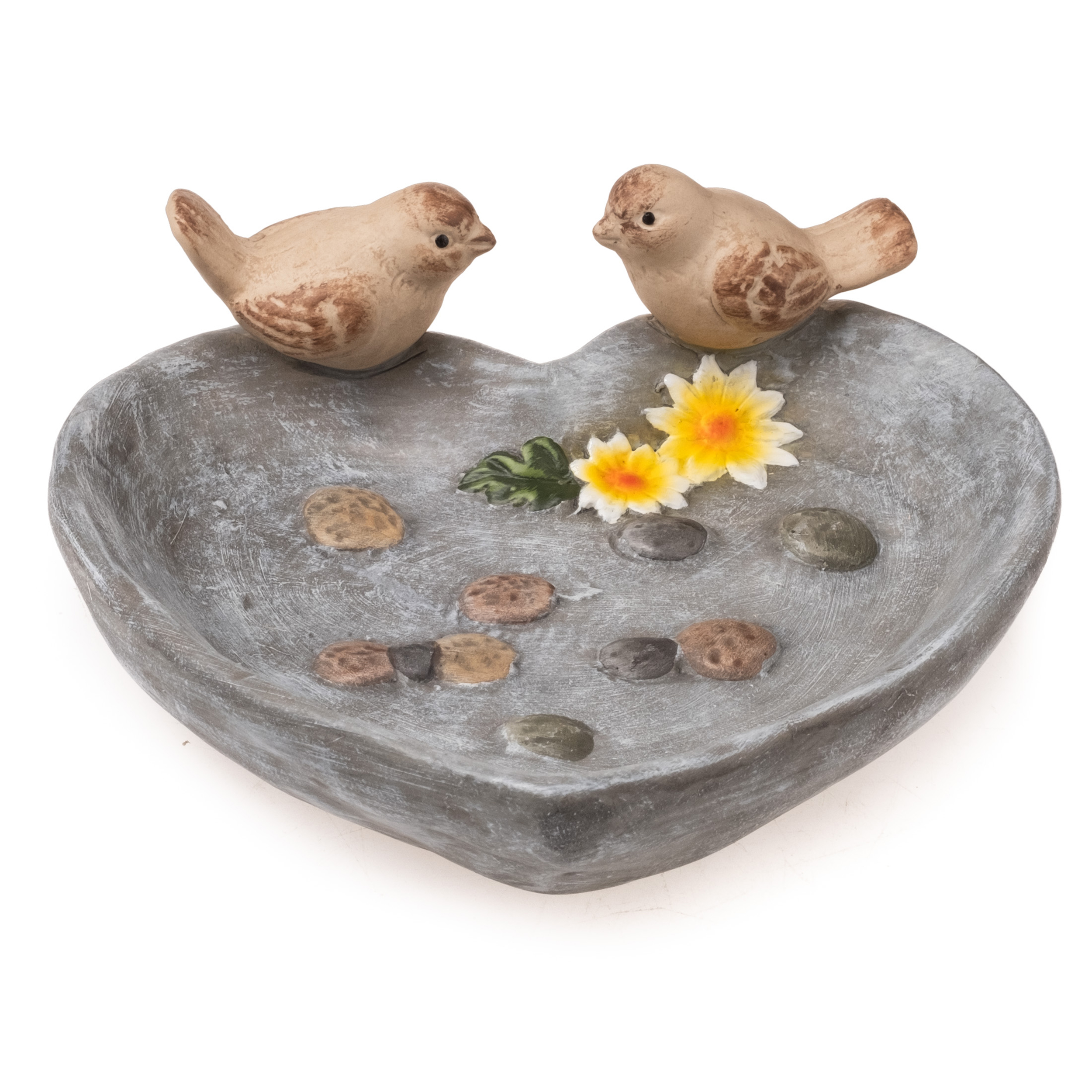 Die Vogeltränke Herzvogel Leni begeistert mit liebevollem Design und romantischer Herzform. Gefertigt aus hochwertigem Porzellan und verziert mit zwei detailreich gestalteten Vögeln sowie dekorativen Steinen wird diese Vogeltränke zu einem besonderen Blickfang im Garten. Ob auf der Terrasse, dem Balkon oder im Blumenbeet – das Vogelbad in Herzform setzt stilvolle Akzente und schafft eine einladende Atmosphäre für Vögel. Das charmante Steindekor unterstreicht die natürliche Ausstrahlung und fügt sich harmonisch in jede Gartendeko ein. Die Porzellan Vogeltränke eignet sich ideal als Wasserstelle für kleine Gartenvögel oder als dekoratives Element im Außenbereich. Besonders im Landhaus Stil oder in romantisch gestalteten Gärten entfaltet diese Gartendeko ihre volle Wirkung. Wer eine bezaubernde Vogeltränke aus Porzellan sucht, die Funktionalität mit dekorativem Charakter verbindet, findet mit diesem Vogelbad in Herzform eine stilvolle Ergänzung für Garten, Balkon oder Terrasse.