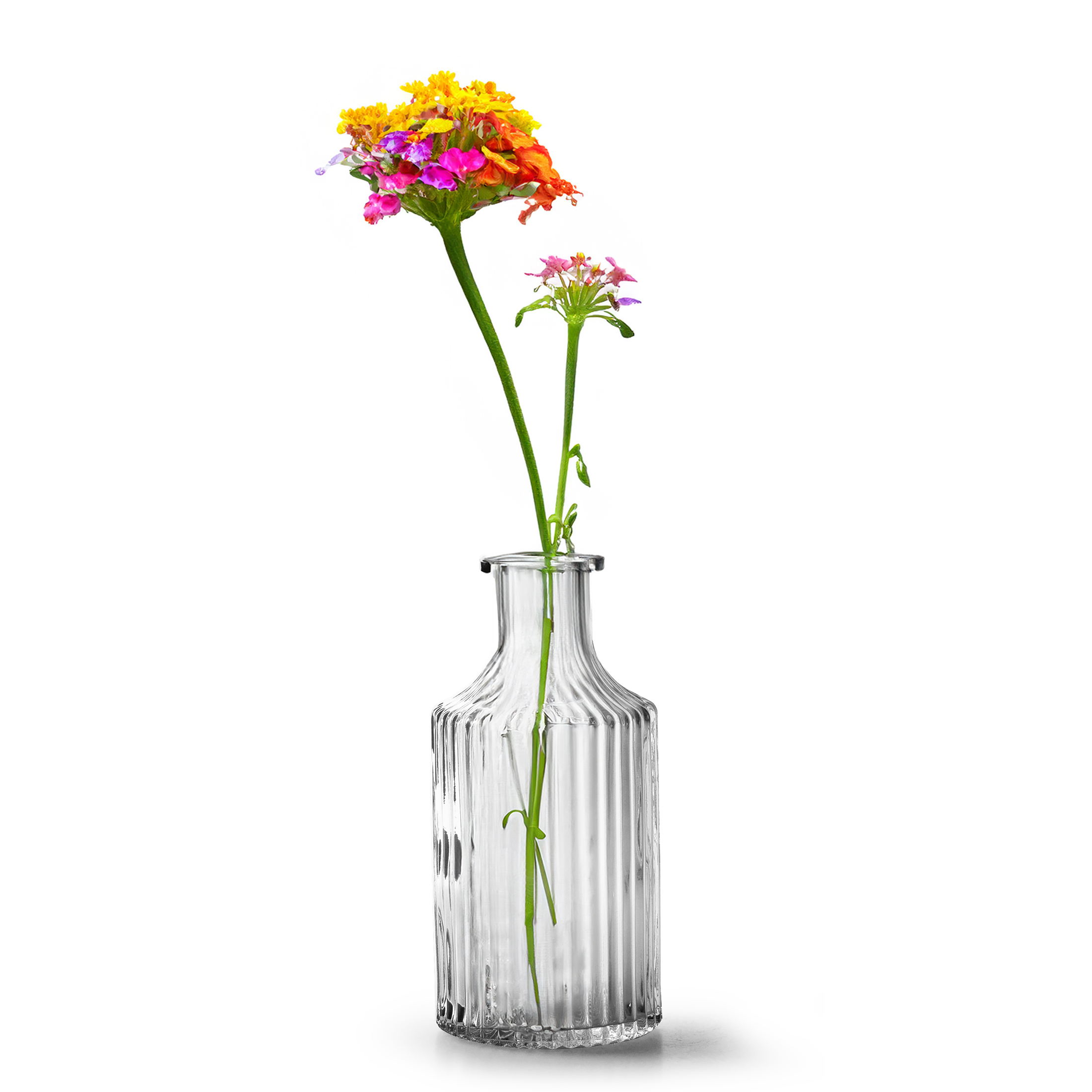 Die einzigartige Rillenoptik dieser stilvollen Vasen verleiht Ihrer Tischdekoration eine ganz besondere Note. Das Glas ist von höchster Qualität und strahlt Eleganz aus, sodass Sie Ihre Gäste mit einem ansprechenden Blumenarrangement beeindrucken können. Mit ihrer idealen Größe eignet sich diese Flaschenvase perfekt für kleine Blumengestecke bestehend aus 3-6 wunderschönen Blüten. Durch die schmale Öffnung der Vase werden die einzelnen Stiele optimal gehalten und präsentiert. Besonders bei festlichen Anlässen wie Hochzeiten, Kommunion oder Jubiläumsfeiern kommt diese edle Vase besonders gut zur Geltung. Die originelle Rillenoptik wird zum Blickfang auf jedem festlich gedeckten Tisch und sorgt für einen Hauch von Luxus in Ihrem Ambiente. Lassen Sie Ihrer Kreativität freien Lauf und gestalten Sie atemberaubende Dekorationselemente mit dieser stilvollen Vase als Mittelpunkt. Ob klassische Rosenbouquets oder moderne Wildblumen-Arrangements - alles wirkt noch schöner in diesem außergewöhnlichen Gefäß. Überzeugen auch Sie sich selbst von der Schönheit dieser Vasenkreation! Bestellen Sie jetzt unsere elegante Flaschenvase im raffinierten Design und machen sie Ihren nächsten Festtag zu etwas Besondere.