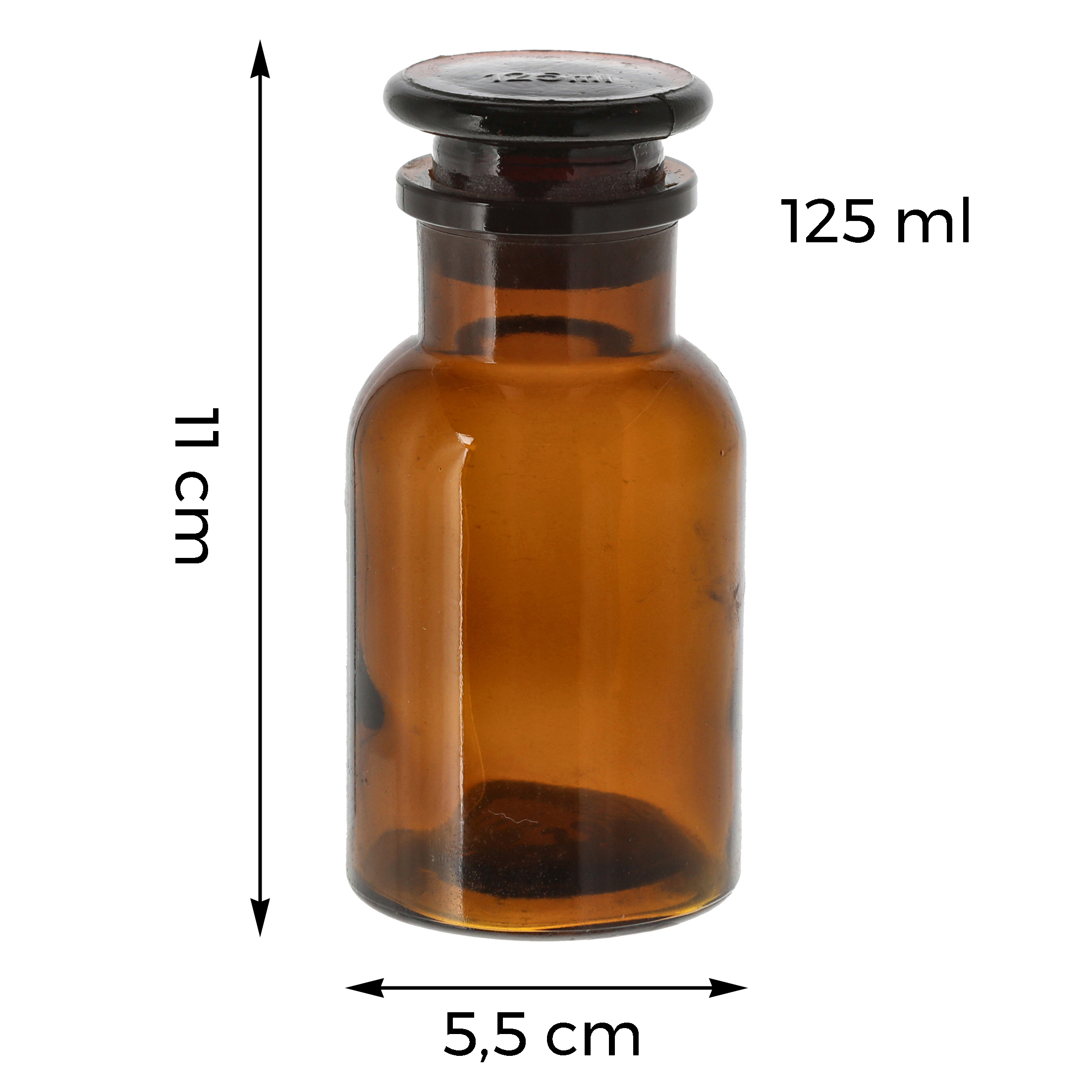 Produktinformationen "Apothekerflasche Braunglas mit Glasstopfen und Weithals"