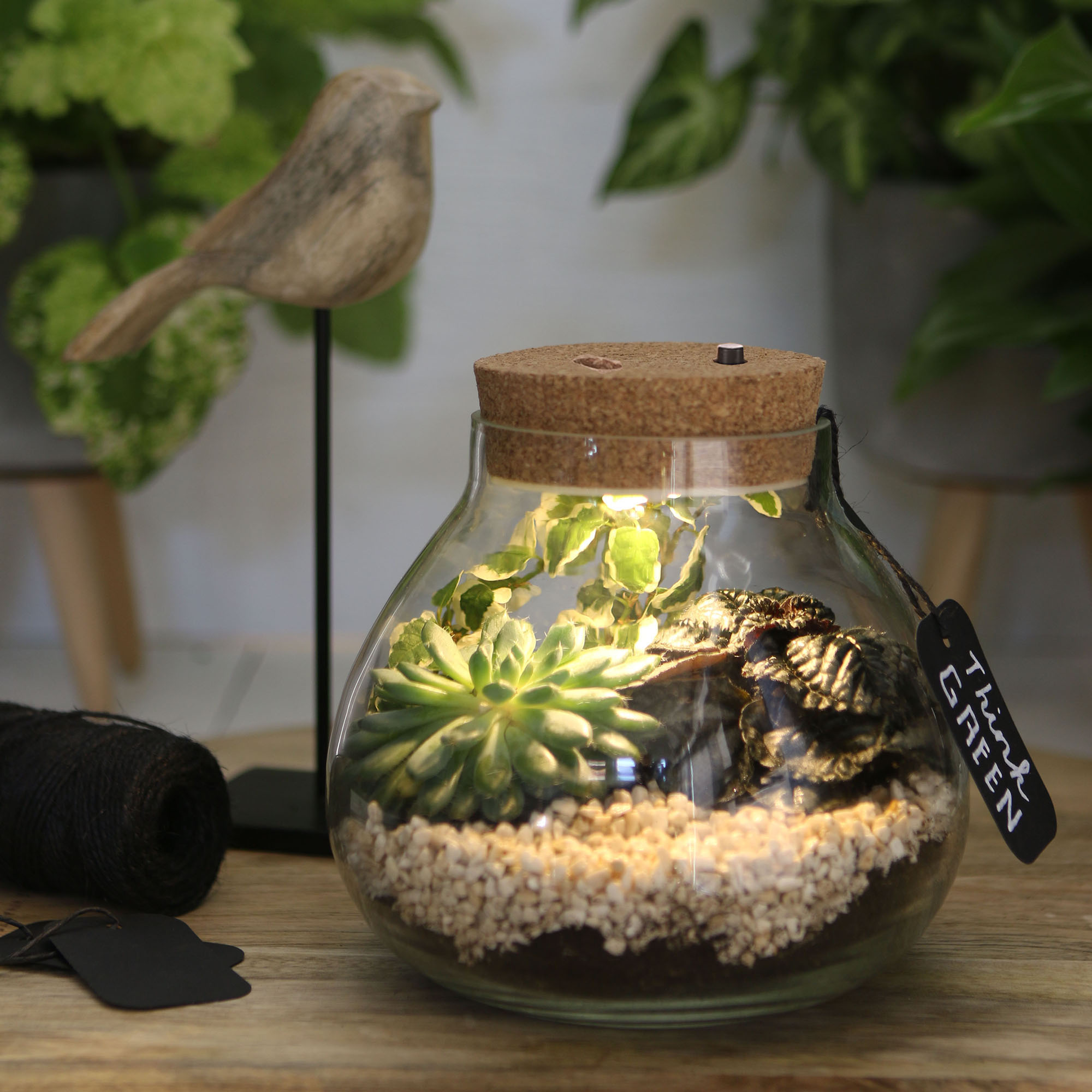 Pflanz-Terrarium mit Korken und LED-Beleuchtung