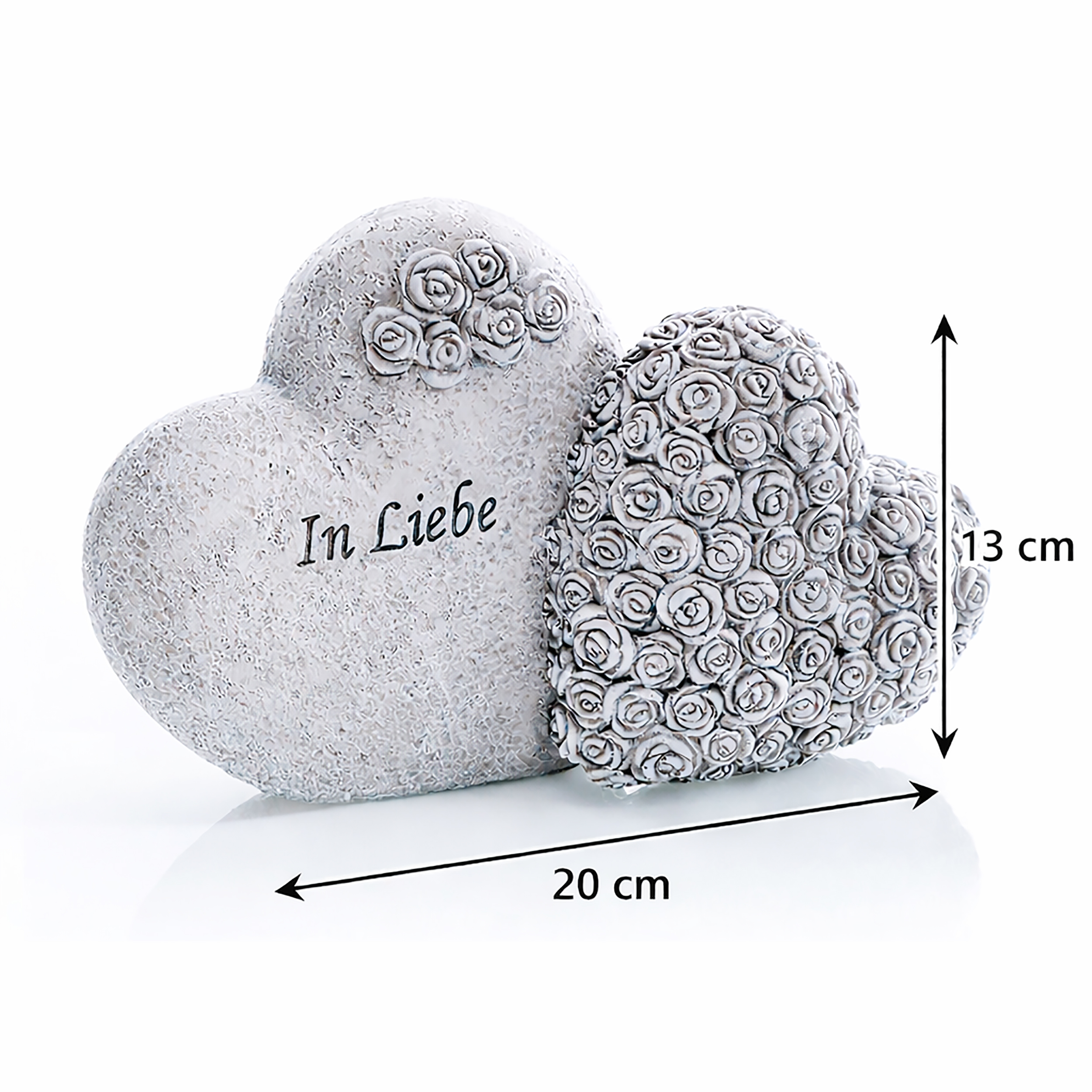 Zauberhafte Grabdeko in Herzform zum Gedenken an Ihre Liebsten als stilvolle Grabverzierung. Die Grabherzen sind aus Kunstharz gefertigt und somit frostfest und witterungsbeständig. Trauer-Deko, die sich auch als besinnlicher Grabstein für Ihre geliebten Vierbeiner eignet.