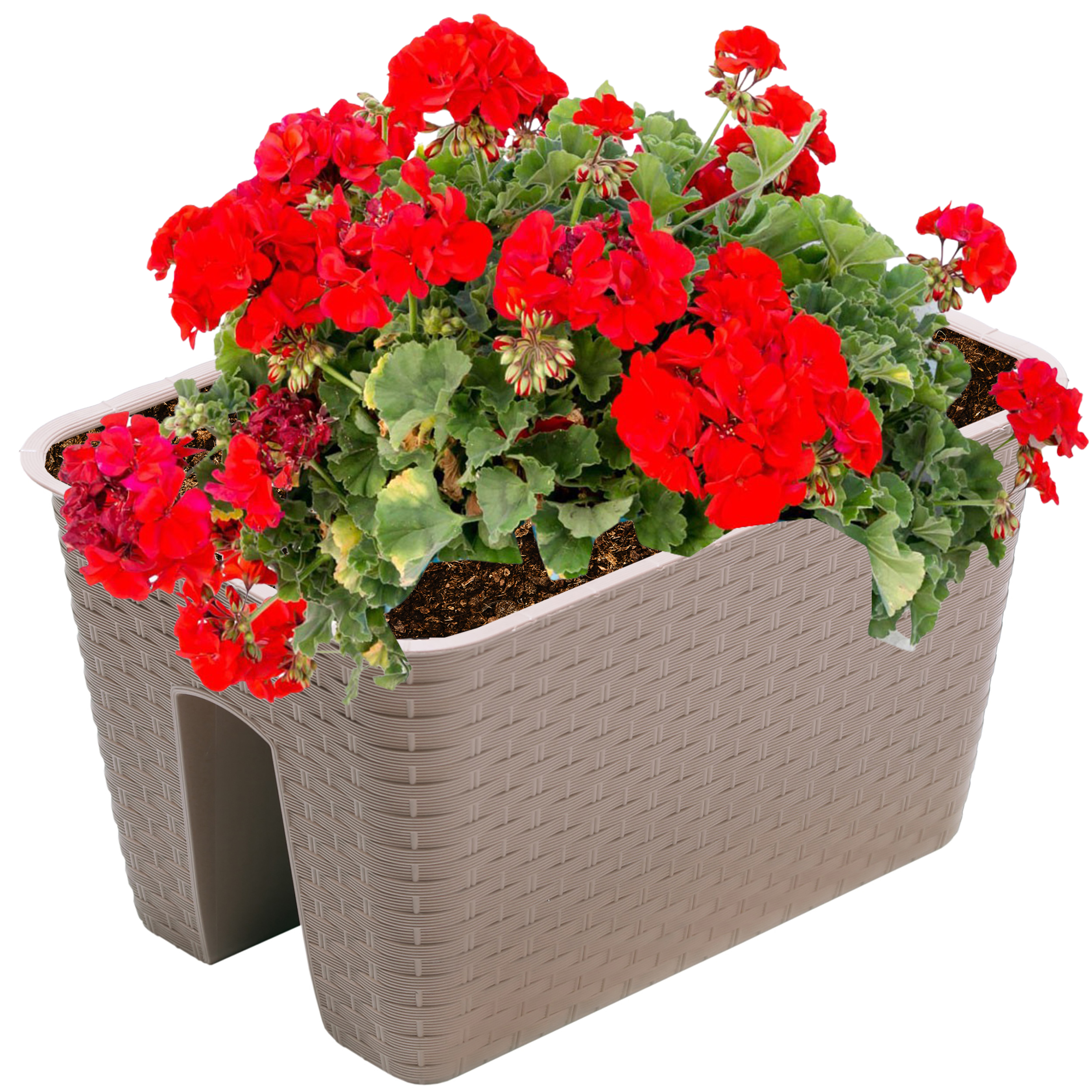 Blumenkasten in toller Rattan-Optik, wetterfest, zur Montage auf Geländern. Da der Kasten auf beiden Seiten des Handlaufs sitzt, erfreut er das Auge außen wie innen. Aus der exotischen Kollektion RATOLLA, deren Oberflächenstruktur einem Rattangeflecht nachempfunden ist. RATOLLA Balkonkasten sind ein wenig zeitgemäß, ein wenig Retro und ein echter Hingucker. Die RATOLLA Balkonkästen sind nicht nur optisch ansprechend, sondern überzeugen auch durch ihre Funktionalität. Sie bieten ausreichend Platz für eine Vielzahl von Pflanzen und ermöglichen es Ihnen, Ihren Balkon oder Ihre Terrasse in einen grünen Rückzugsort zu verwandeln. Dank der hochwertigen Verarbeitung und des robusten Materials können die RATOLLA Balkonkästen problemlos den unterschiedlichsten Witterungsbedingungen standhalten. Ob Sonnenschein, Regenschauer oder Frost - diese Kästen bleiben stets stabil und sehen dabei noch immer wie neu aus. Der Retro-Look verleiht Ihrem Außenbereich zudem ein ganz besonderes Flair. Die Oberfläche im Rattangeflecht-Design erinnert an vergangene Zeiten und bringt gleichzeitig eine moderne Note mit sich. So schaffen Sie eine harmonische Atmosphäre auf Ihrem Balkon oder Ihrer Terrasse. Egal ob Blumen, Kräuter oder Gemüse - mit den RATOLLA Balkonkästen haben Sie genug Platz für all Ihre Lieblingspflanzen. Lassen Sie Ihrer Kreativität freien Lauf und gestalten Sie Ihr eigenes kleines Paradies im Freien! Mit diesen außergewöhnlichen Hinguckern werden sowohl Nachbarn als auch Gäste beeindruckt sein. Der zeitgemäße retro Stil zieht alle Blicke auf sich und macht Ihren Außenbereich zum absoluten Highlight.