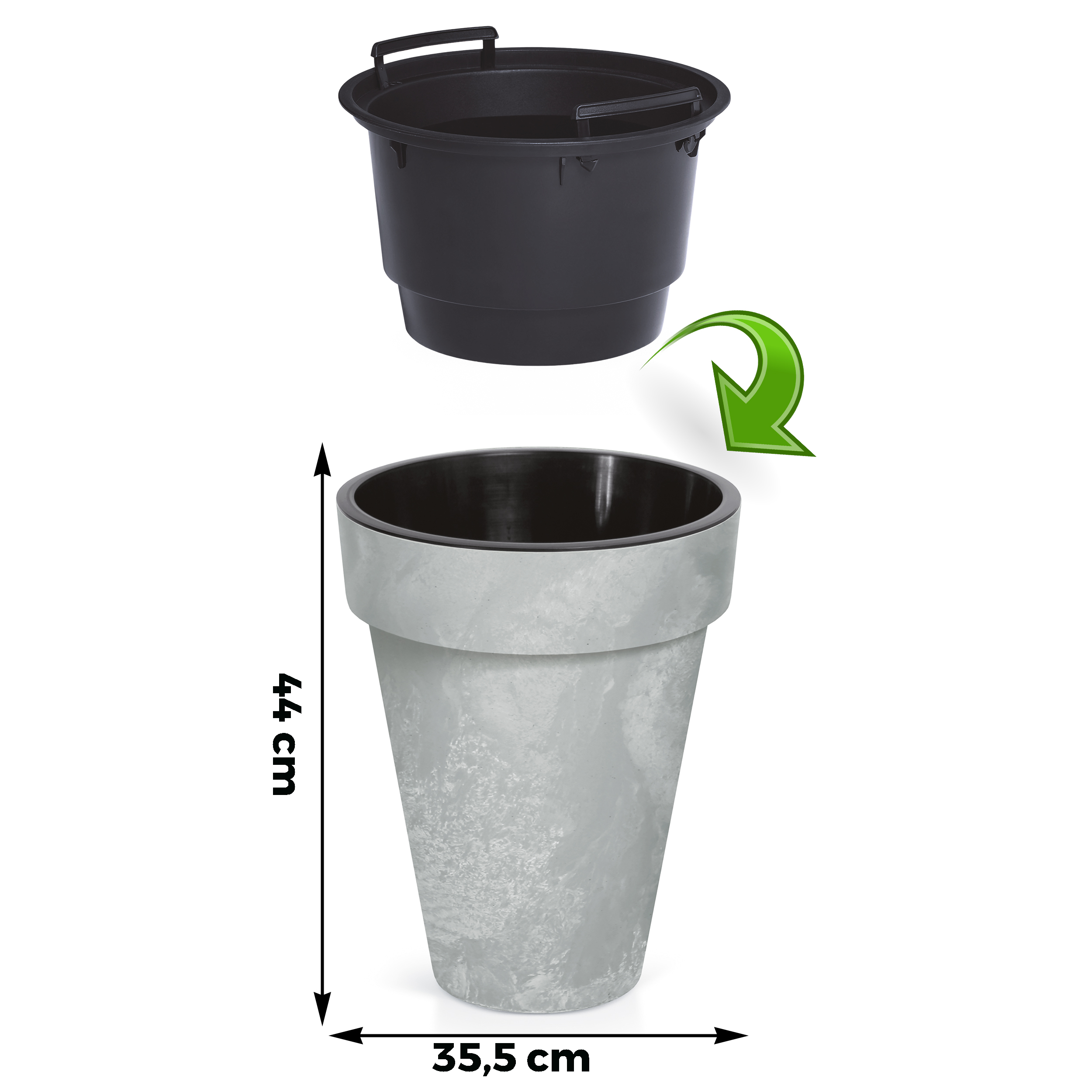 Dank seines leichten Materials lässt sich der Pflanzkübel mühelos transportieren und flexibel platzieren. Ob auf dem Balkon, der Terrasse oder im Garten - dieser Blumentopf zieht alle Blicke auf sich. Die Beton-Optik verleiht ihm eine moderne und edle Ausstrahlung. Mit verschiedenen Formvarianten kann man den Kübel ganz nach seinem persönlichen Geschmack wählen und so das eigene grüne Paradies gestalten. Der Kunststoff sorgt dafür, dass der Pflanzkübel sowohl drinnen als auch draußen verwendet werden kann. Er ist wetterfest sowie UV-beständig und behält somit seine schöne Optik über einen langen Zeitraum hinweg bei. Mit einer passenden Untersetzung bietet er zudem optimalen Schutz für empfindliche Oberflächen wie Holz oder Fliesen vor Feuchtigkeitsschäden durch überschüssiges Gießwasser. Egal ob prachtvolle Blumenarrangements, duftende Kräuterbeete oder kleine Gemüsepflanzen - in diesem stilvollen Pflanzgefäß kommen sie perfekt zur Geltung. Der großzügige Durchmesser ermöglicht ausreichend Platz für die Wurzeln Ihrer Lieblingspflanzen, sodass diese gesund wachsen können. Überzeugen Sie sich selbst von diesem leichtgewichtigen Hingucker mit betörender Betonoptik! Bringen Sie Stil in Ihren Außenbereich und setzen Sie Ihre grünen Schätze gekonnt in Szene – mit dem leichten Pflanzkübel in schicker Beton-Optik