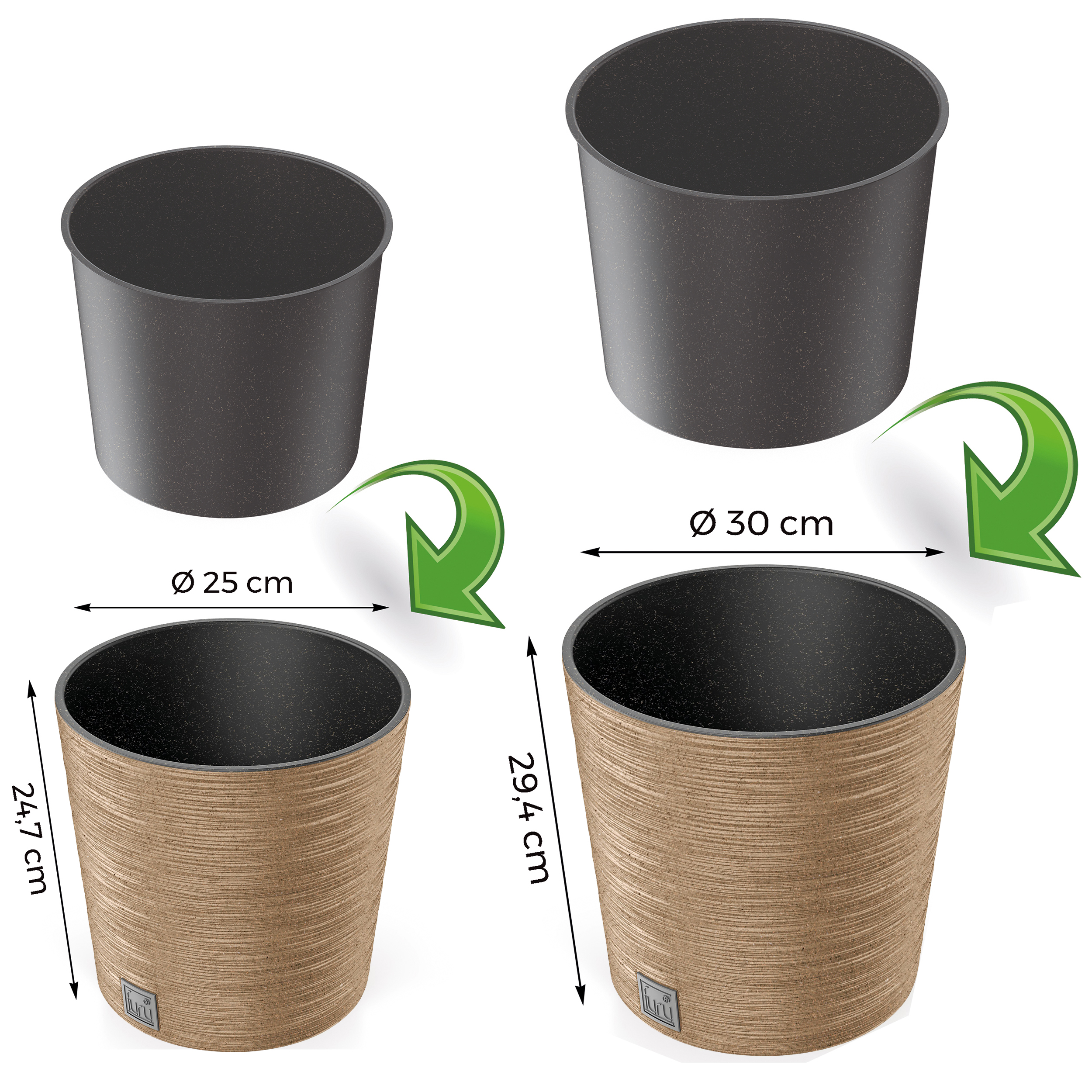 Produktinformationen "Blumentopf FURU Eco Wood mit 33% echtem Holzanteil"