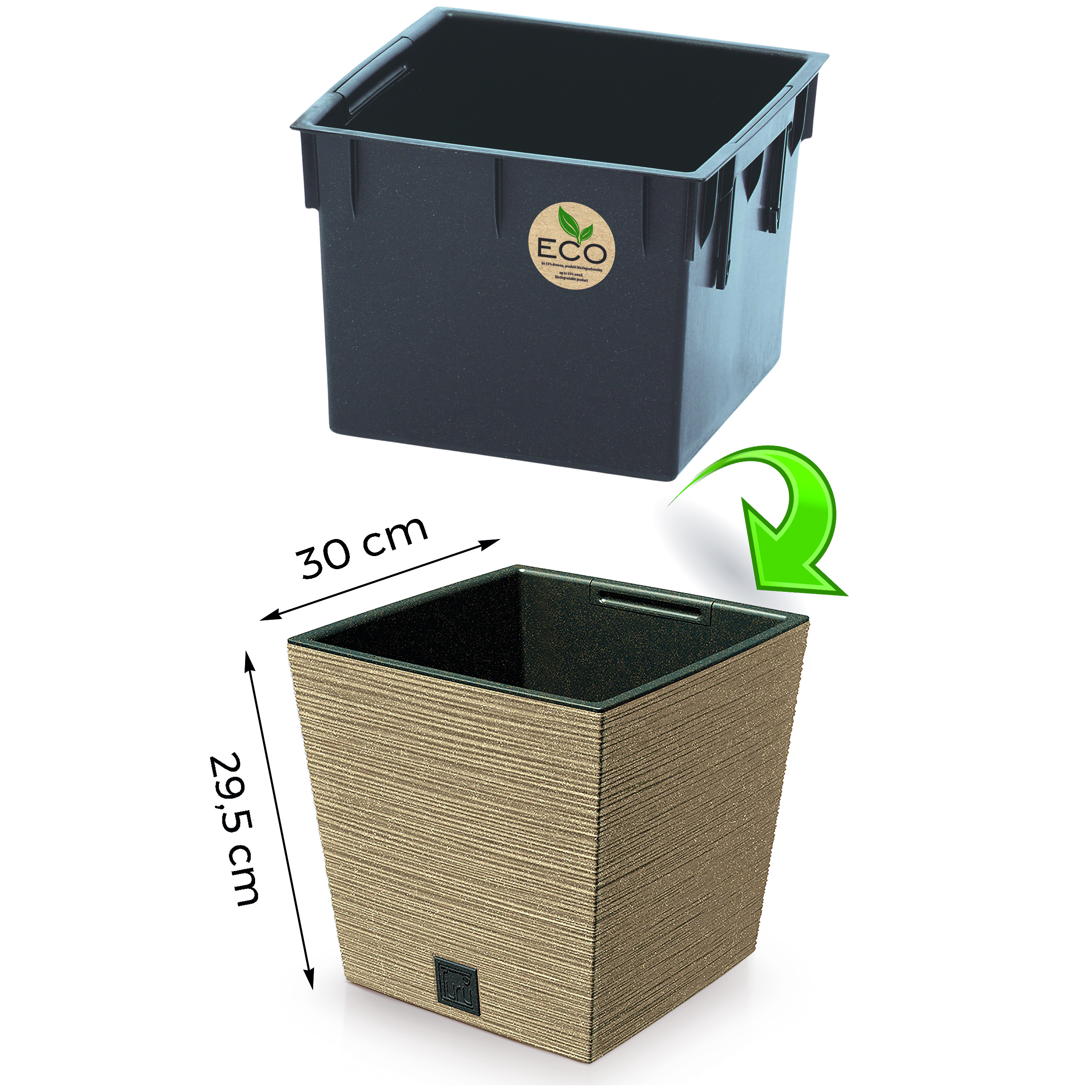 Produktinformationen "Blumentopf FURU Eco Wood mit 33% echtem Holzanteil"