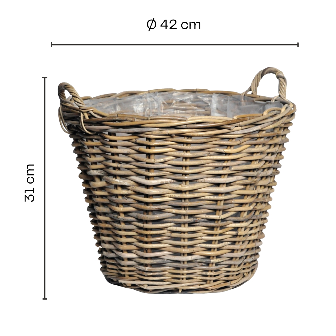 Pflanzkorb aus Weide mit Henkel/Innenfolie