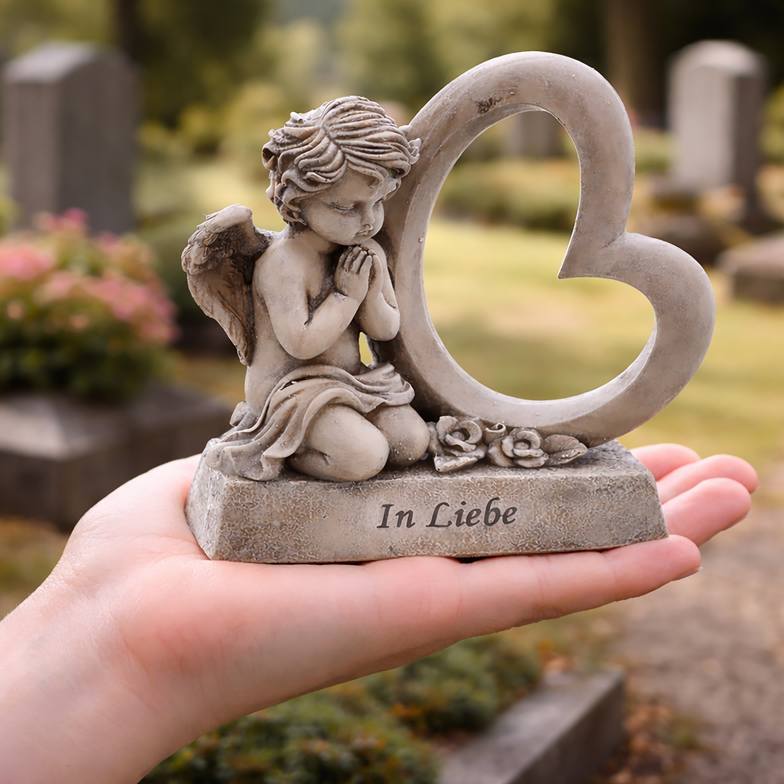 Grabdeko zum Gedenken an Ihre Liebsten aus Kunstharz, frostfest und witterungsbeständig. Die aparten Dekofiguren mit Engel für eine stilvolle Grabverzierung. Trauer-Deko, die sich auch als besinnlicher Grabstein für Ihre geliebten Vierbeiner eignet.