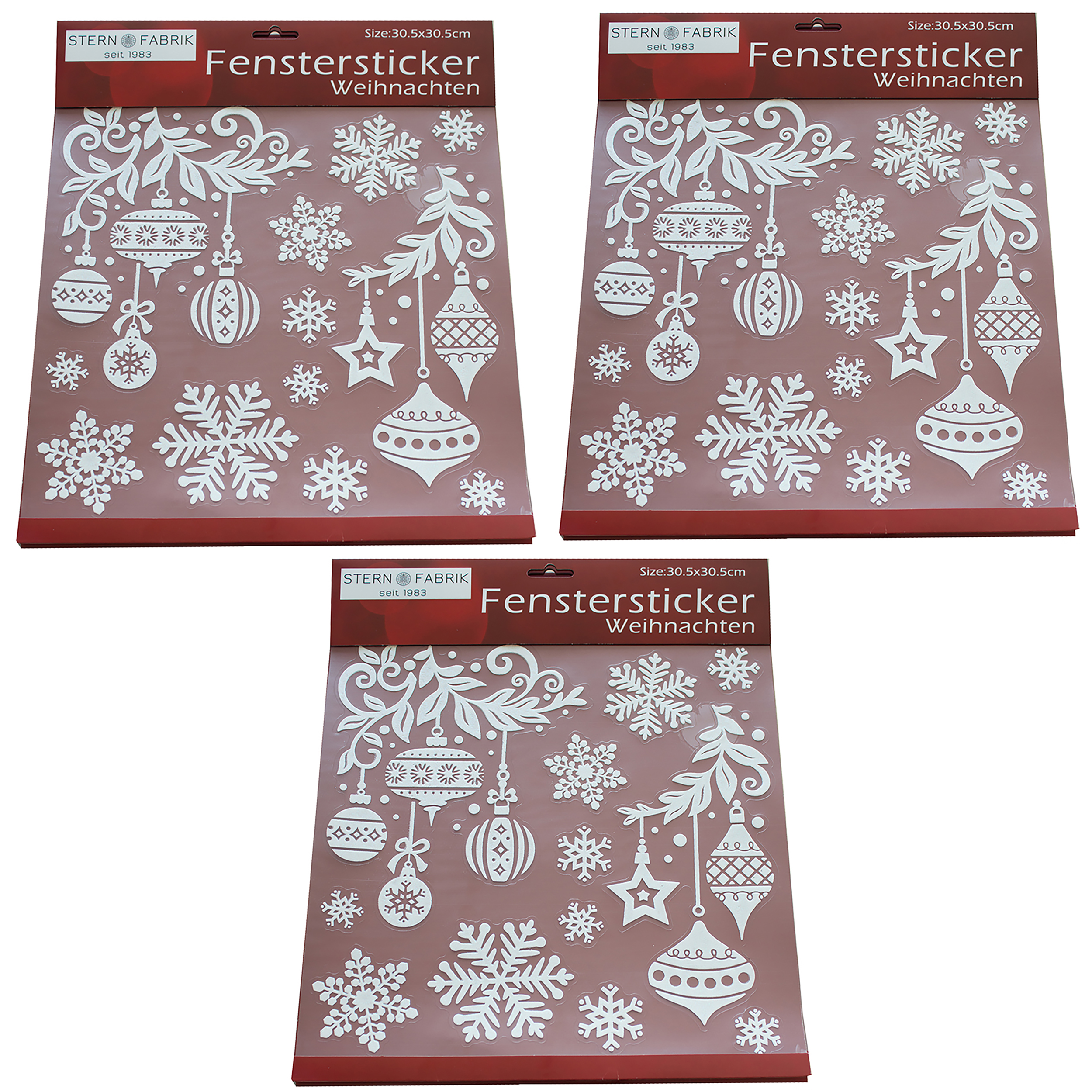 Produktinformationen "Fenstersticker "Weihnachten" 3 Bögen 30,5 x 30,5 cm"