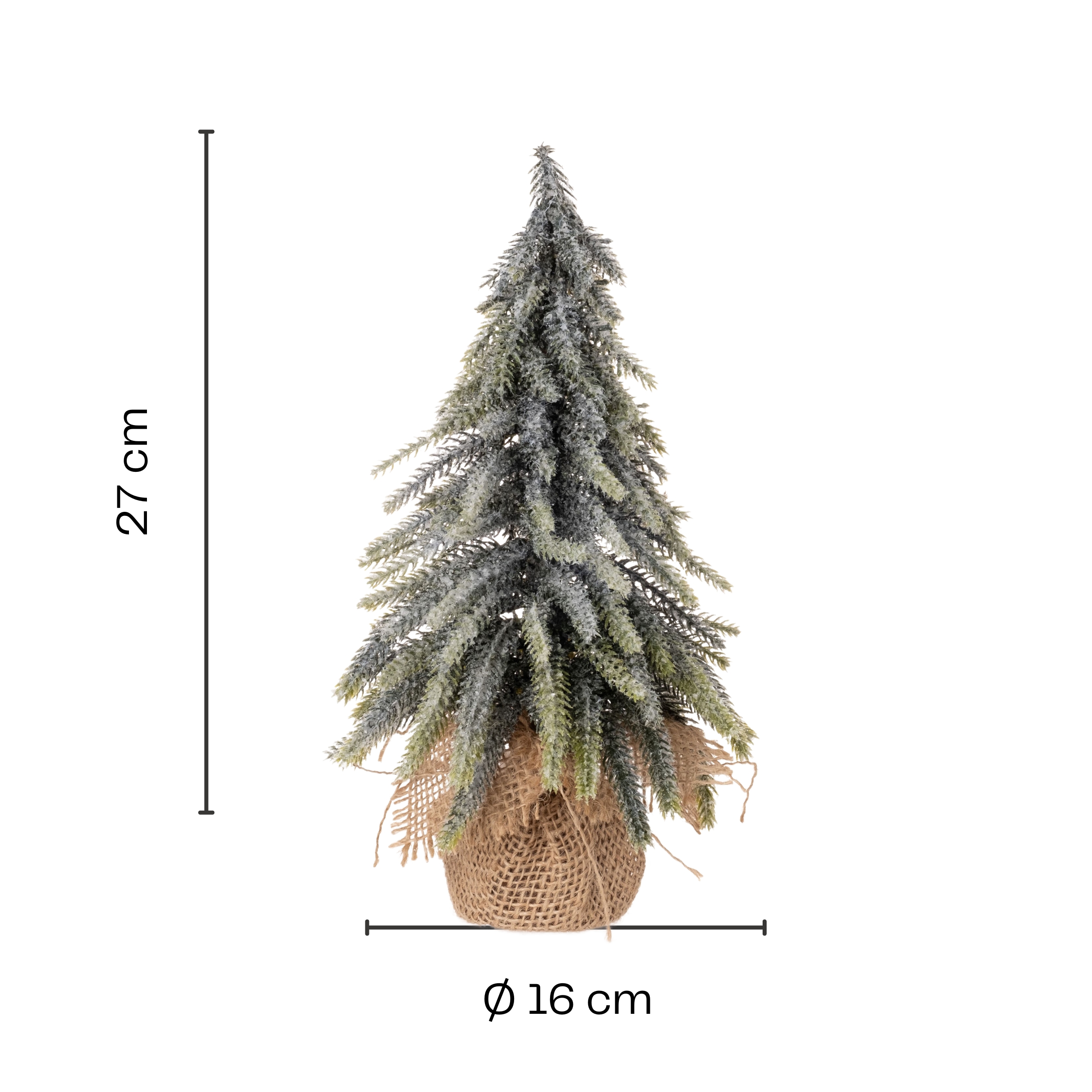 Tauchen Sie ein in die zauberhafte Welt der Weihnachtszeit mit unserem künstlichen Tannenbaum "Winterzauber". Mit einer Höhe von 20 oder 27 cm ist dieser kleine Baum perfekt für eine stimmungsvolle Dekoration in Ihrem Zuhause. Die kunstvoll gestalteten Eiskristalle verleihen ihm einen hauch von Wintermagie und lassen ihn strahlen. Der rustikale Topf, ummantelt mit Jute, verleiht dem Baum einen nostalgischen Charme und macht ihn zu einem echten Blickfang in jedem Raum. Ob auf dem Tisch, im Regal oder als Teil Ihrer festlichen Tischdekoration - der "Winterzauber" sorgt für eine gemütliche Atmosphäre und verbreitet die Vorfreude auf das Fest. Lassen Sie sich von der Schönheit und Anmut dieses kleinen Tannenbaums verzaubern und holen Sie sich ein Stück weihnachtliche Magie nach Hause. Gönnen Sie sich selbst oder Ihren Liebsten dieses besondere Deko-Highlight, das nicht nur in der Weihnachtszeit für strahlende Augen sorgen wird. Erwecken Sie mit dem "Winterzauber" die Festtagsstimmung zum Leben und genießen Sie die vorweihnachtliche Zeit in vollen Zügen.