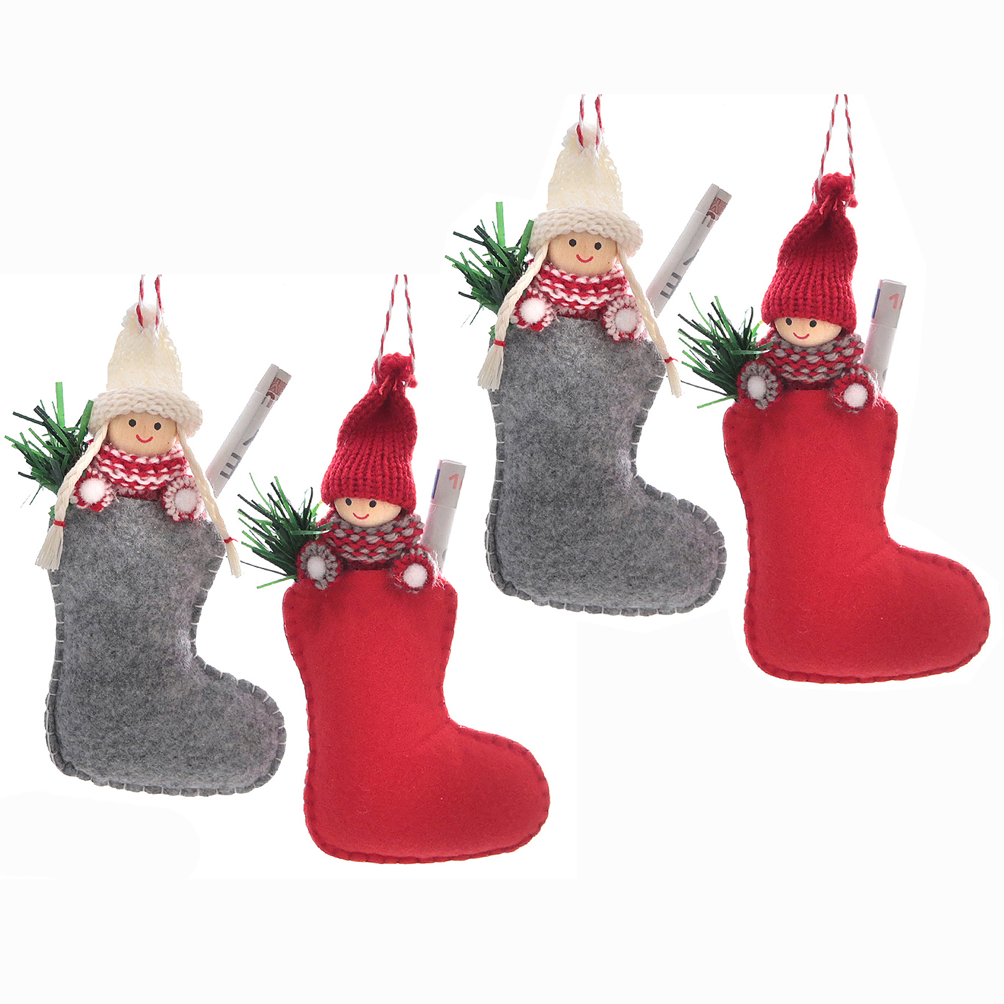 Produktinformationen "4 x Anhänger "Wichtel in Socke" für Geldgeschenke H 17 cm"