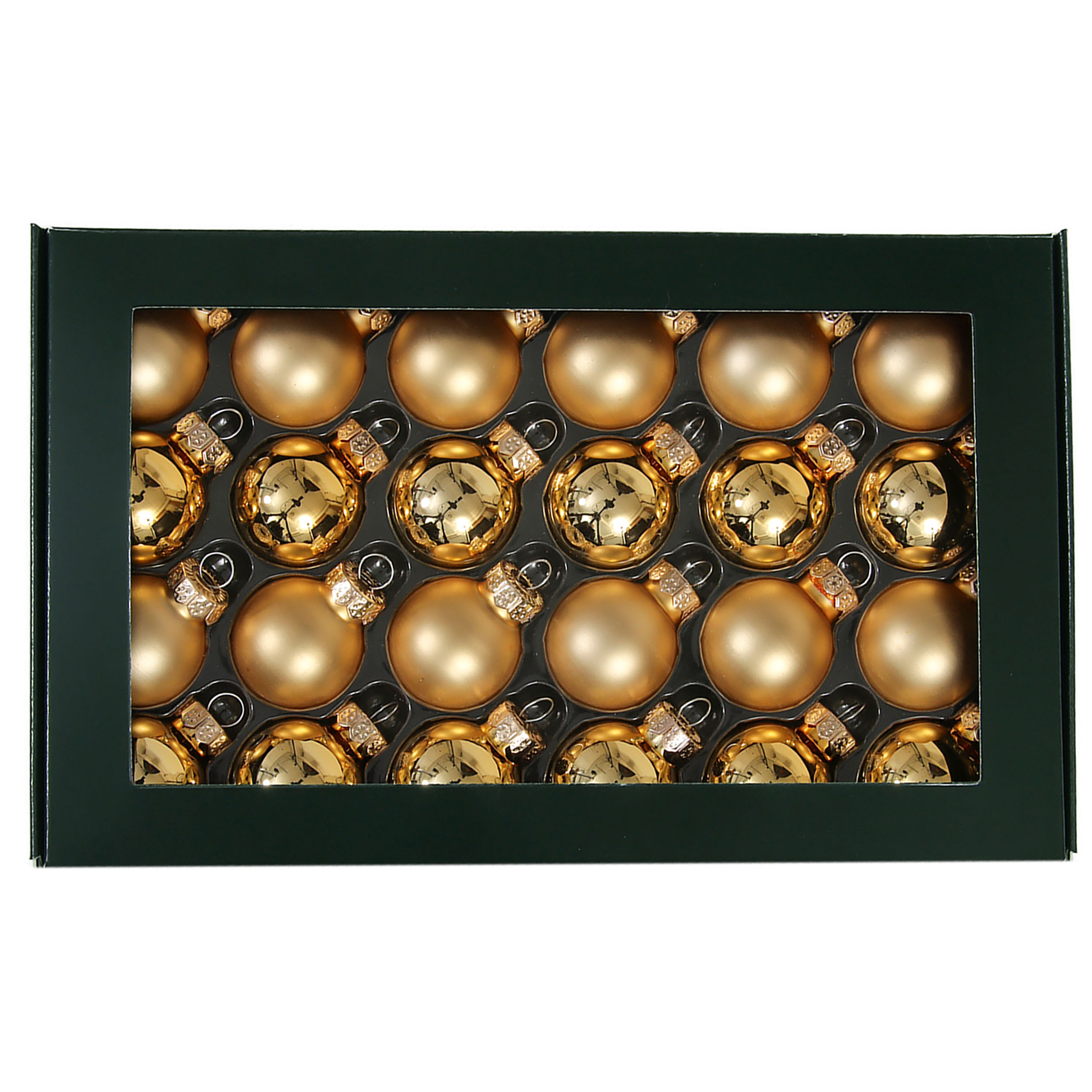 Zauberhafte kleine Baumkugeln aus Glas in unzähligen Farben für eine stimmungsvolle Atmosphäre. Die mini Christbaumkugeln sind nicht nur an kleinen Bäumen ein Blickfang sondern auch in Schalen, Gestecken, Windlichtern und an Geschenken. Wählen Sie aus zwei Größen von 25 mm und 30 mm Durchmesser Ihre liebsten Farben.