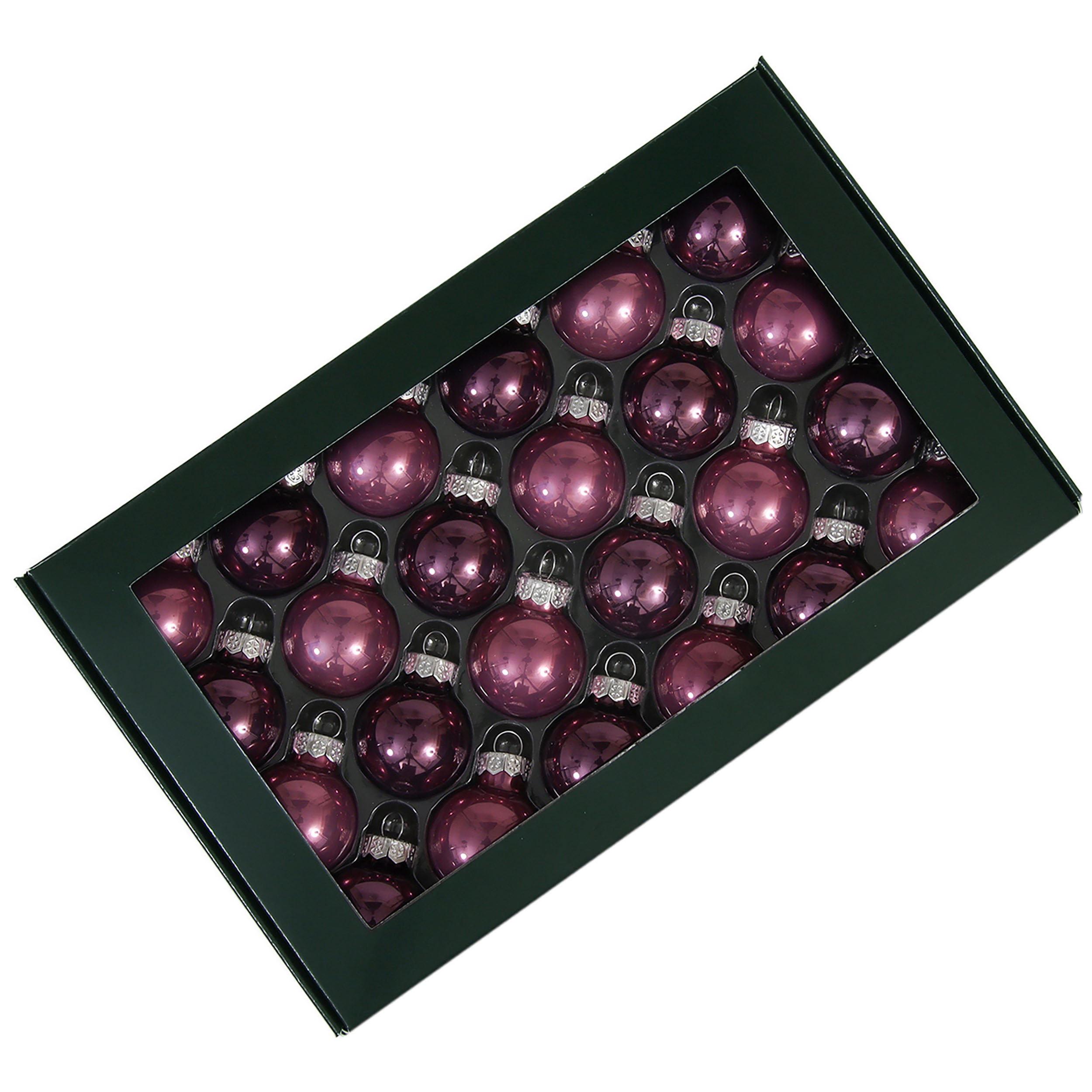 Zauberhafte kleine Baumkugeln aus Glas in unzähligen Farben für eine stimmungsvolle Atmosphäre. Die mini Christbaumkugeln sind nicht nur an kleinen Bäumen ein Blickfang sondern auch in Schalen, Gestecken, Windlichtern und an Geschenken. Wählen Sie aus zwei Größen von 25 mm und 30 mm Durchmesser Ihre liebsten Farben.