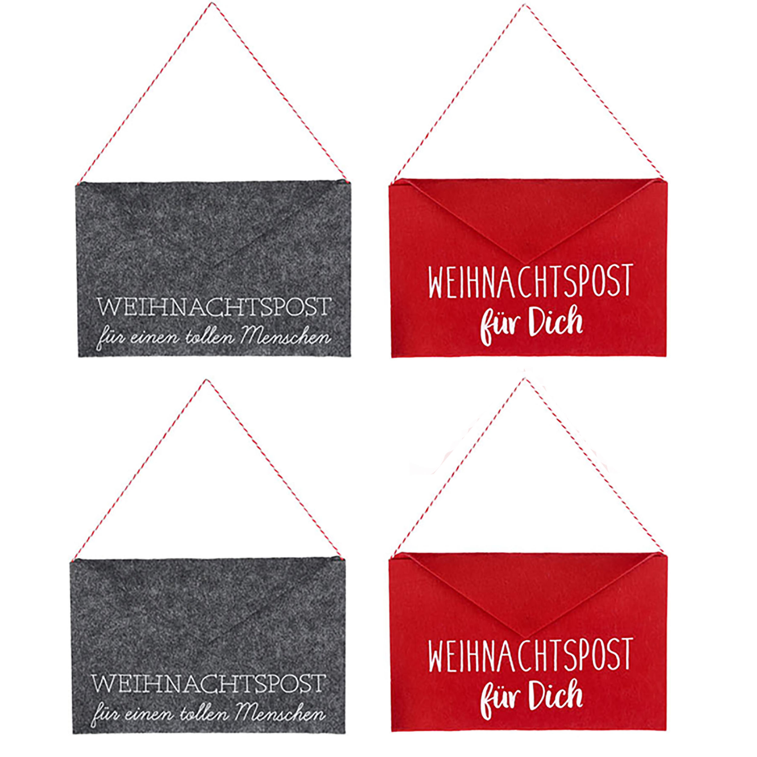 Produktinformationen "4 x Umschlag aus Filz "Weihnachtspost" mit Klettverschluss ca. 23 x 16 cm"